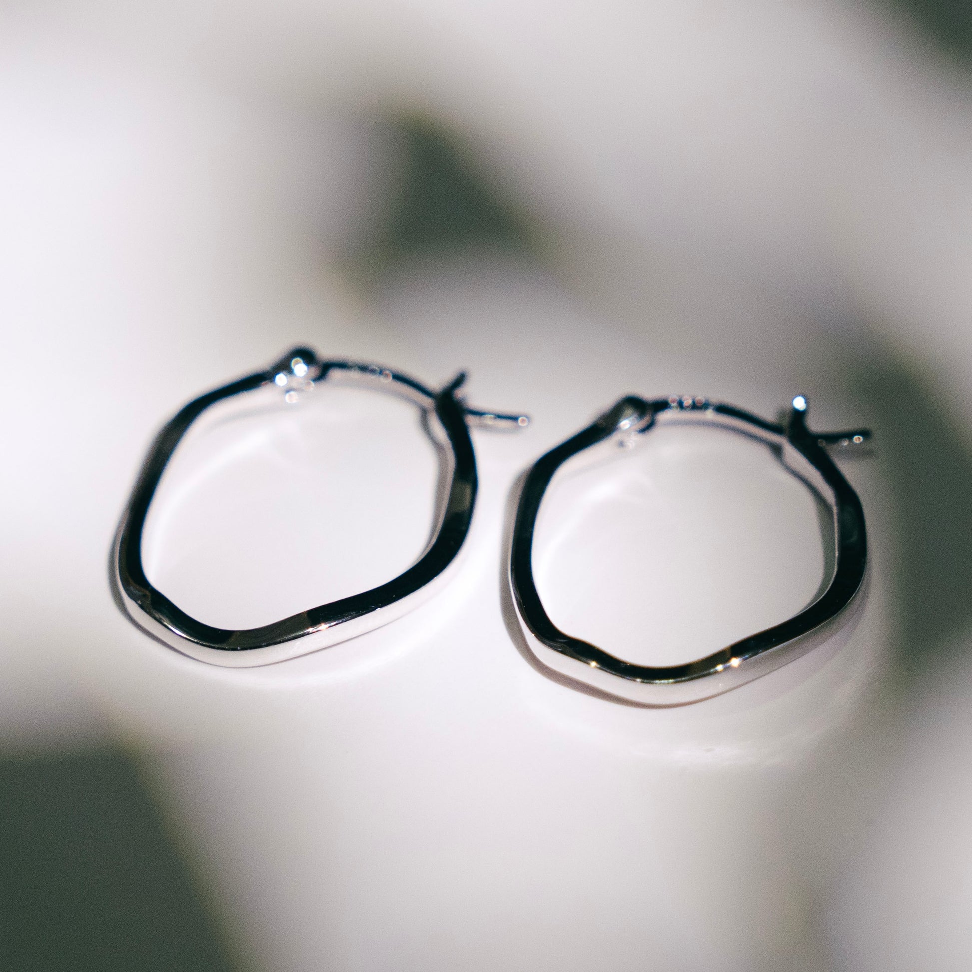 Ces boucles d'oreilles présentent un délicat design circulaire irrégulier, réalisé en argent 925 et disponible en plaqué or 18 carats. L'asymétrie subtile des fines créoles circulaires apporte une touche moderne et artistique, offrant un style raffiné et distinctif.