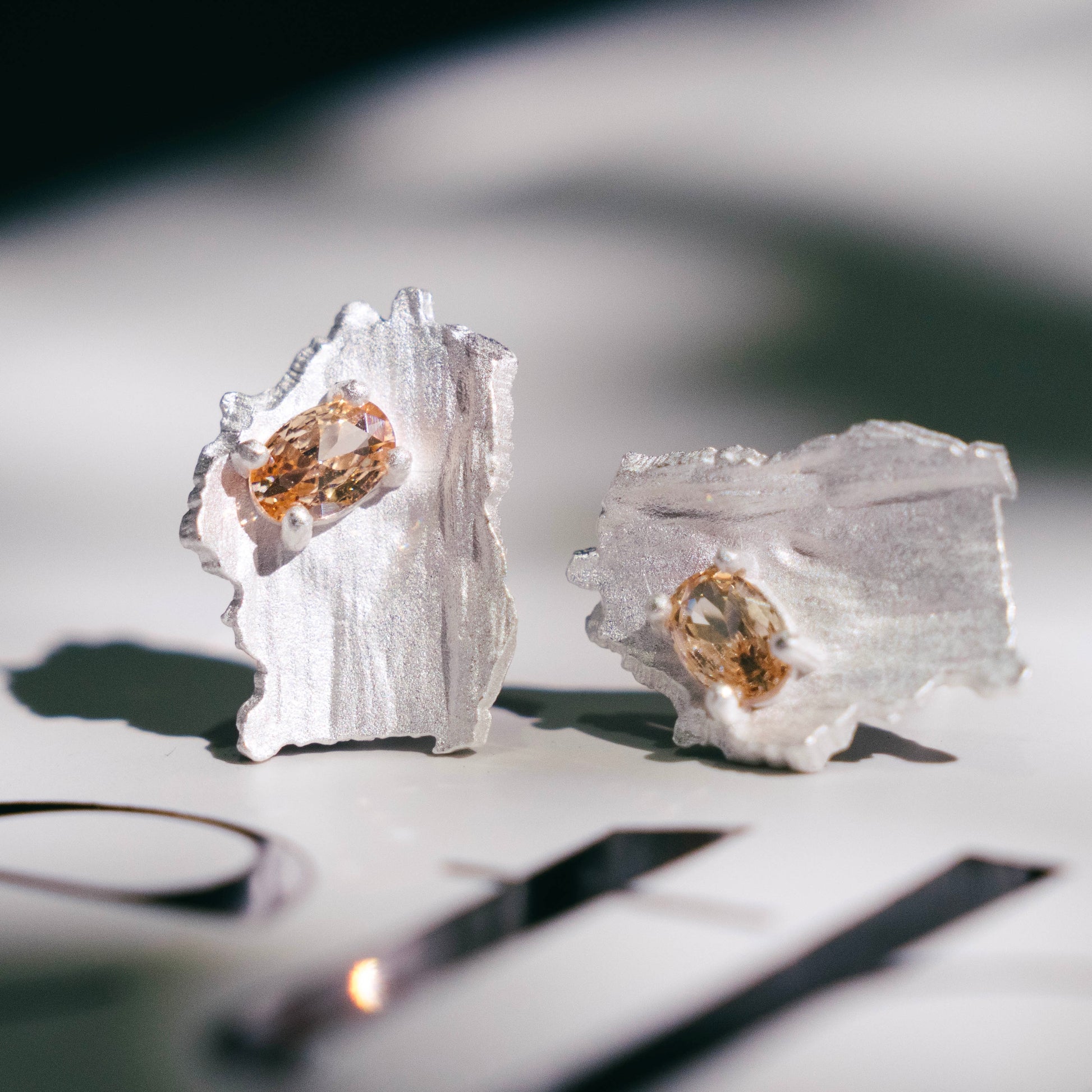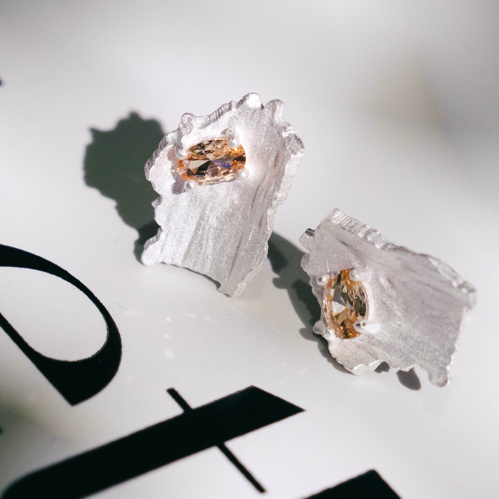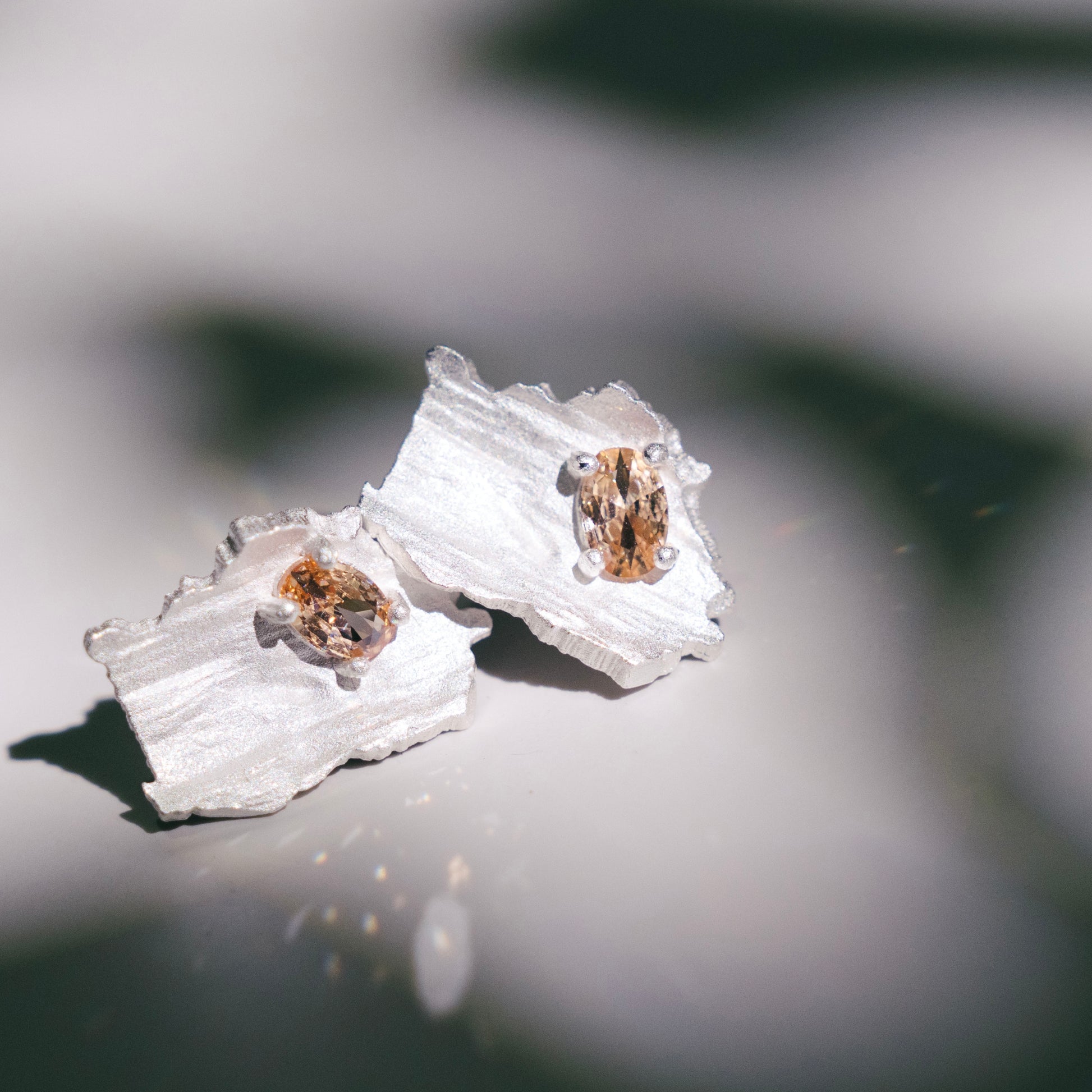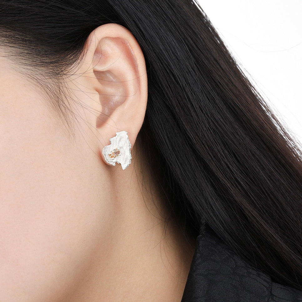 Ces magnifiques clous d'oreilles sont fabriqués en argent 925 à la texture brunie irrégulière et ornés de zircons couleur champagne pour un éclat sophistiqué. Disponibles en argent plaqué or 18 carats, l'alliance de l'argent texturé et des pierres chaudes et chatoyantes crée un look unique et élégant, parfait pour ajouter une touche de glamour raffiné à n'importe quelle tenue.