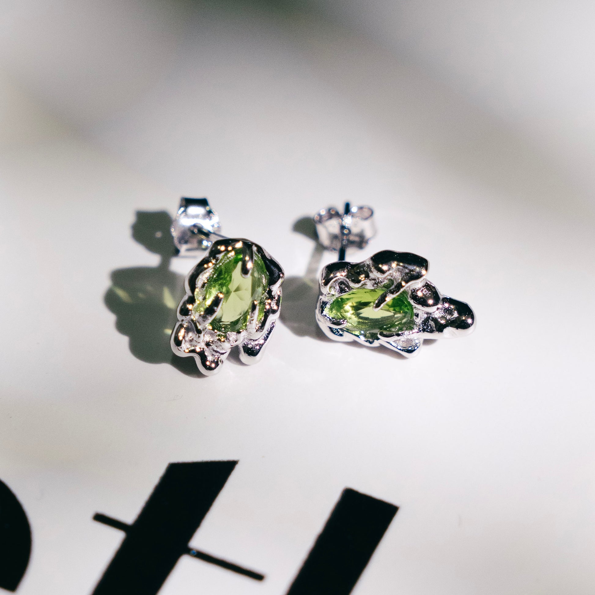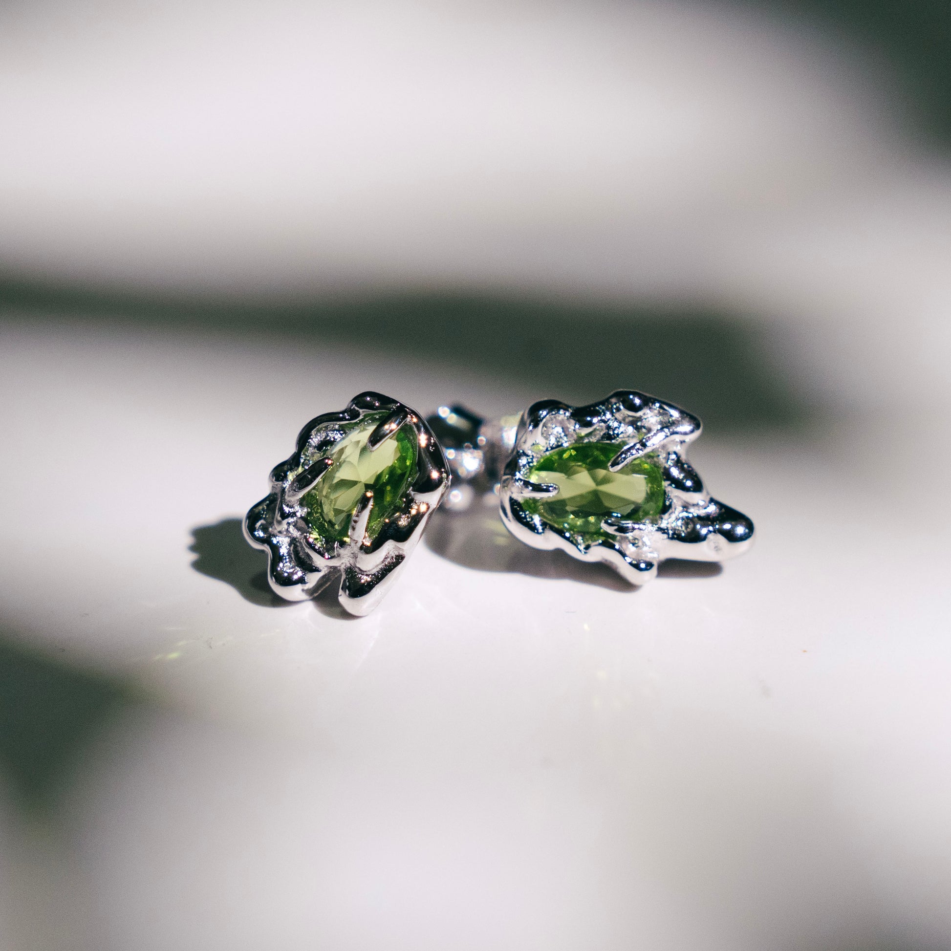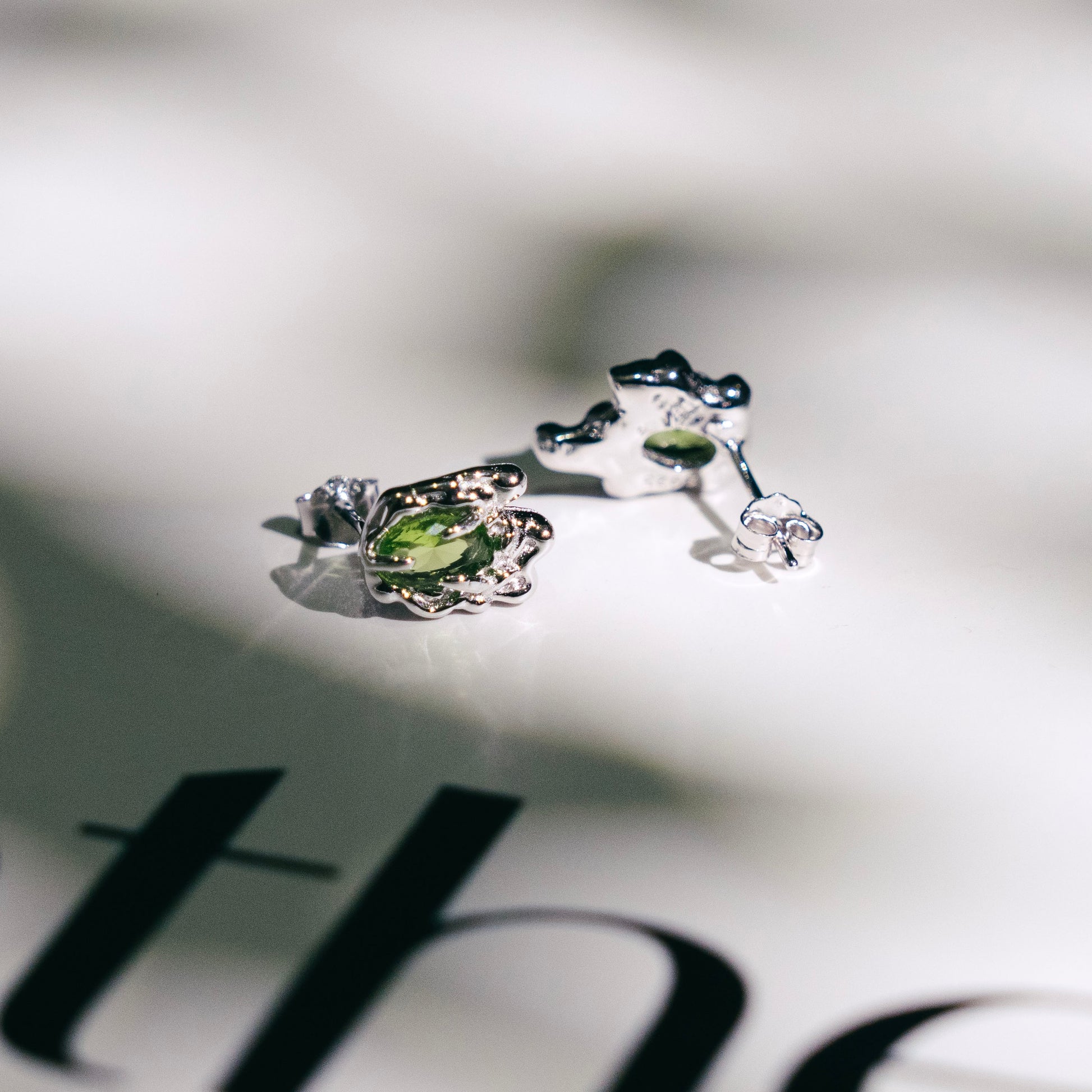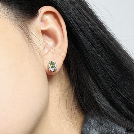 Le zircon ovale vert olive, évoquant une forêt luxuriante, est soigneusement serti sur un anneau en argent 925 à la texture de lave. Ces puces d'oreilles asymétriques allient la beauté brute de la nature à un design contemporain, empreint de mystère et de force. Chaque pièce reflète une personnalité unique, ce qui en fait un ajout parfait à toute garde-robe moderne.