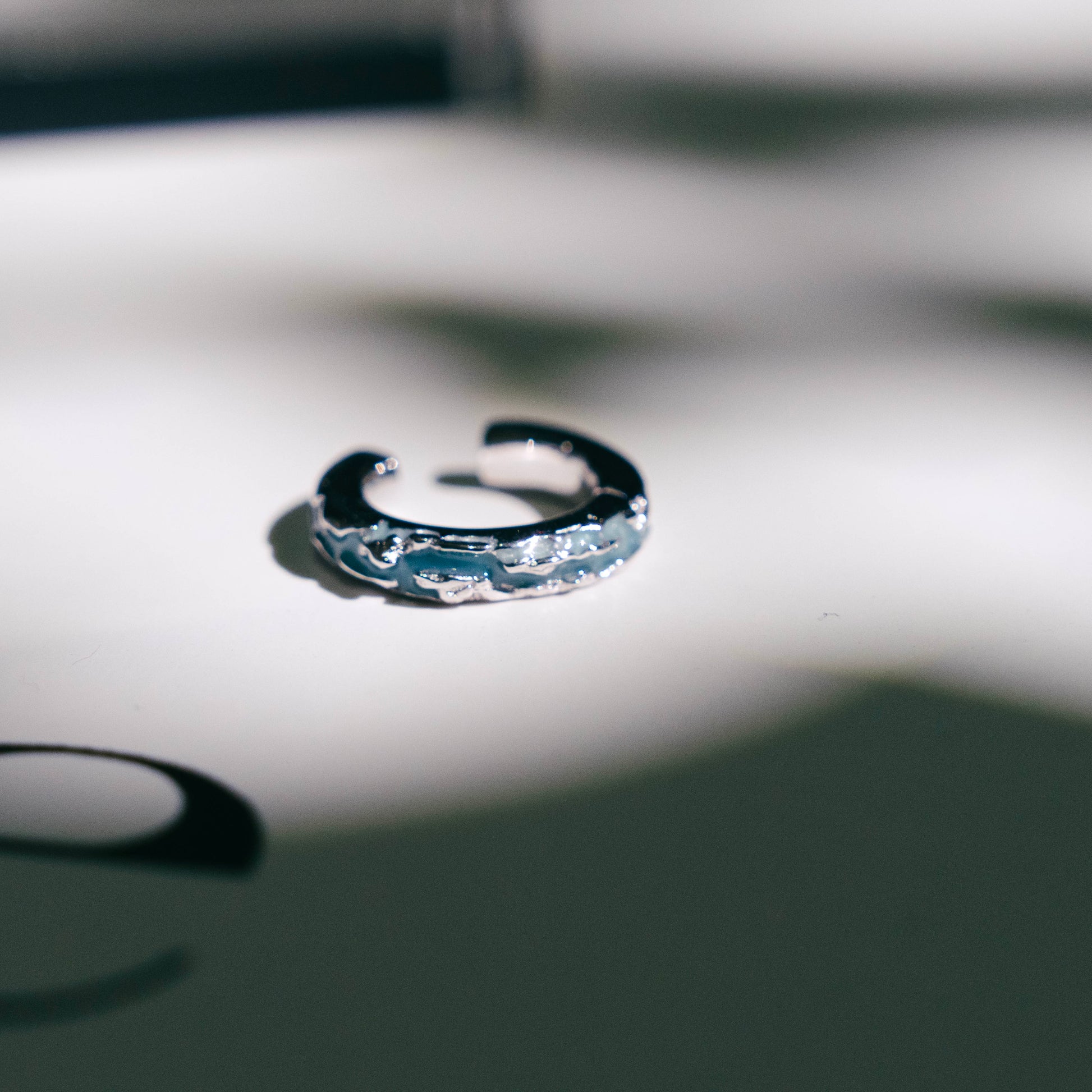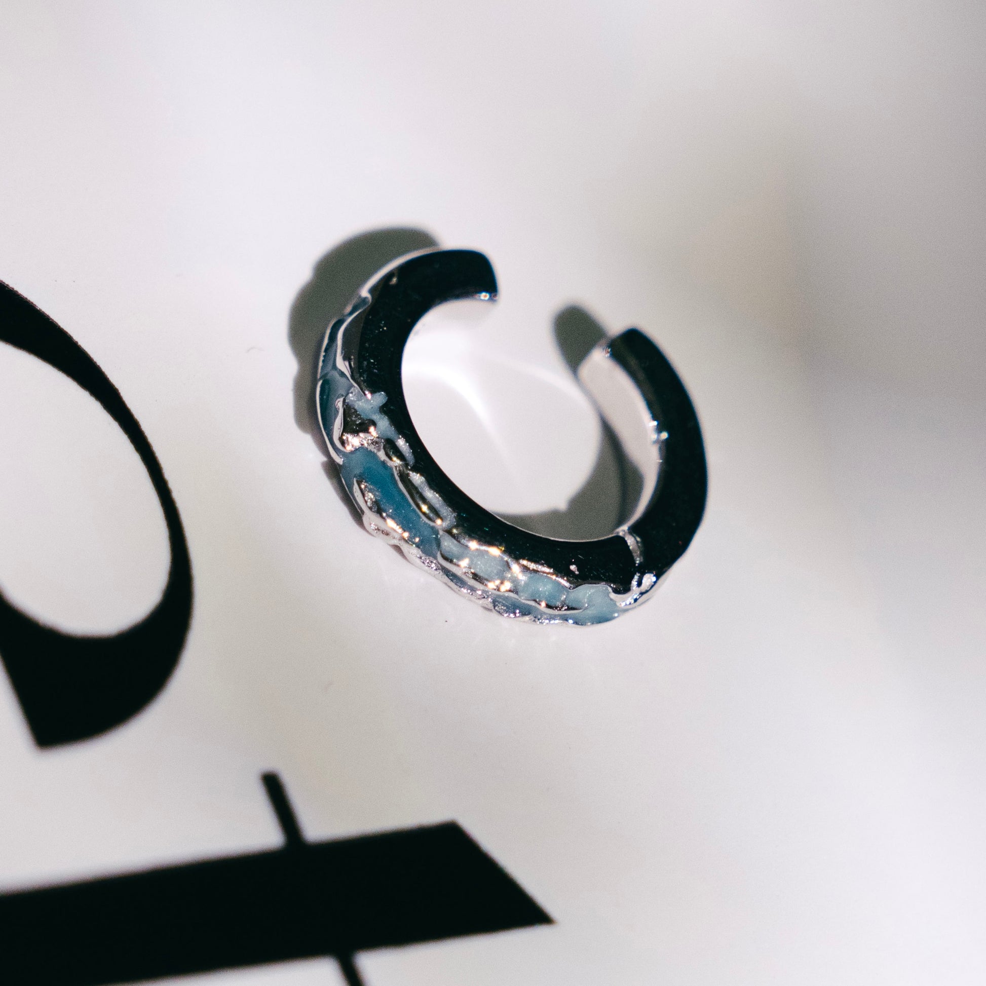The Wave Enamel Ear Cuff combines unique design with vibrant colour. This sleek, C-shaped cuff features a wave-like pattern in a striking blue-green enamel finish, adding artistic flair to your look. Designed to fit comfortably on the ear without piercings, it’s perfect for making a statement.
