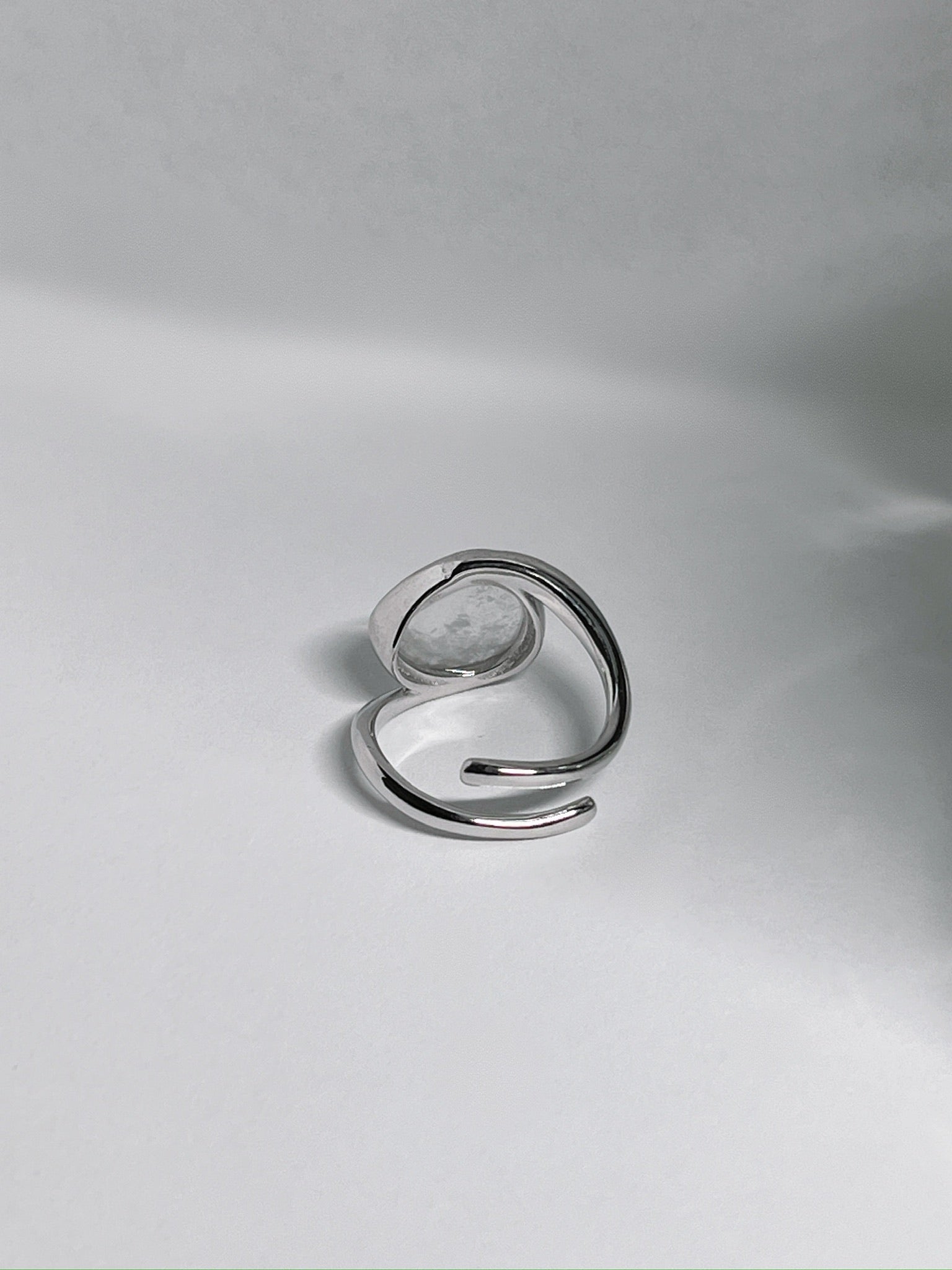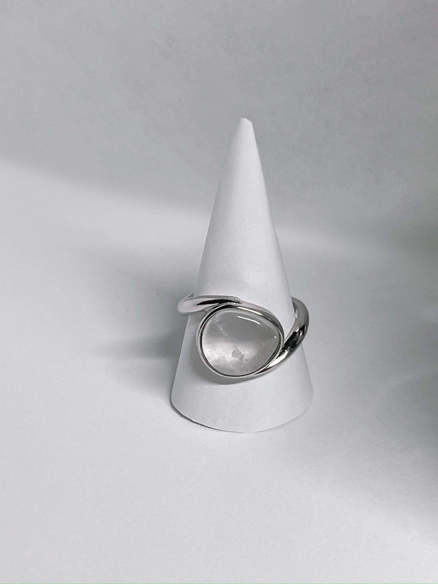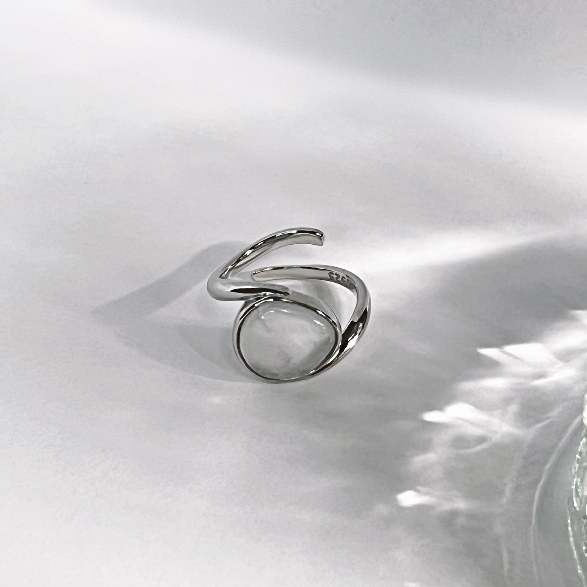A unique open ring featuring an irregular natural crystal at the center. Available in two finishes: 925 silver or 18K gold-plated silver, this design captures the essence of flowing energy, blending nature with contemporary elegance.