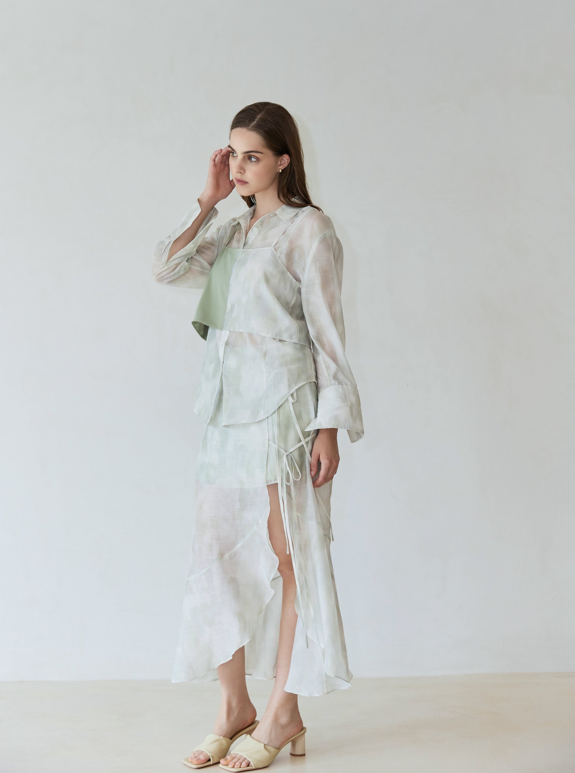 Introducing The Serenity Longshirt, a standout piece in our collection featuring the captivating Serenity Splash color—a delicate green watercolor splash pattern. Crafted from lightweight, sheer fabric, this longshirt is perfect for summer layering. Available in sizes S/M and M/L, it offers a versatile fit for various body types. Wear it as an elegant outer layer or pair it with our The Serenity Split Vest for a coordinated, stylish look. This season's signature print makes The Serenity Longshirt a versatile and essential addition to your wardrobe, offering both sophistication and comfort for any summer occasion.