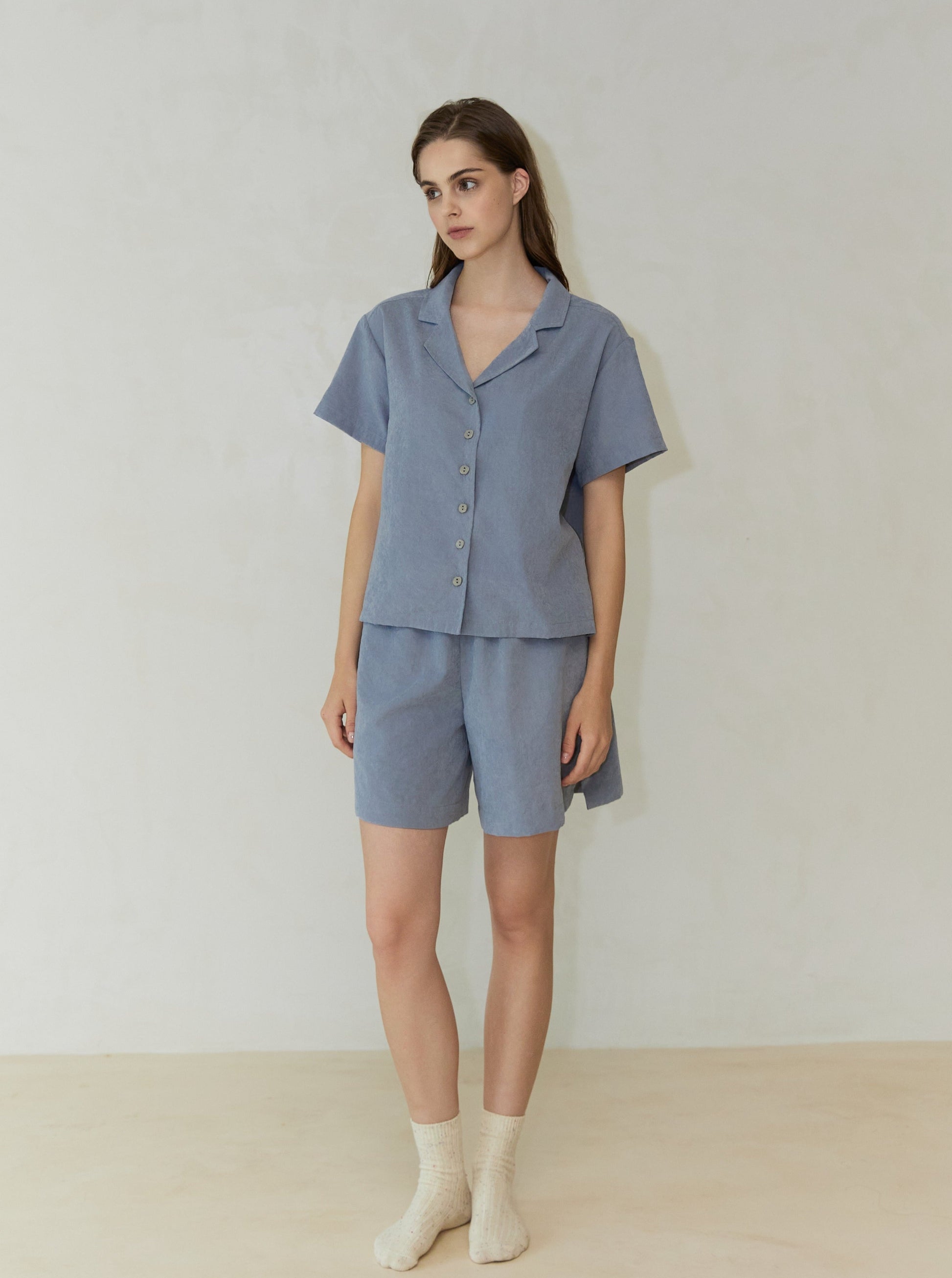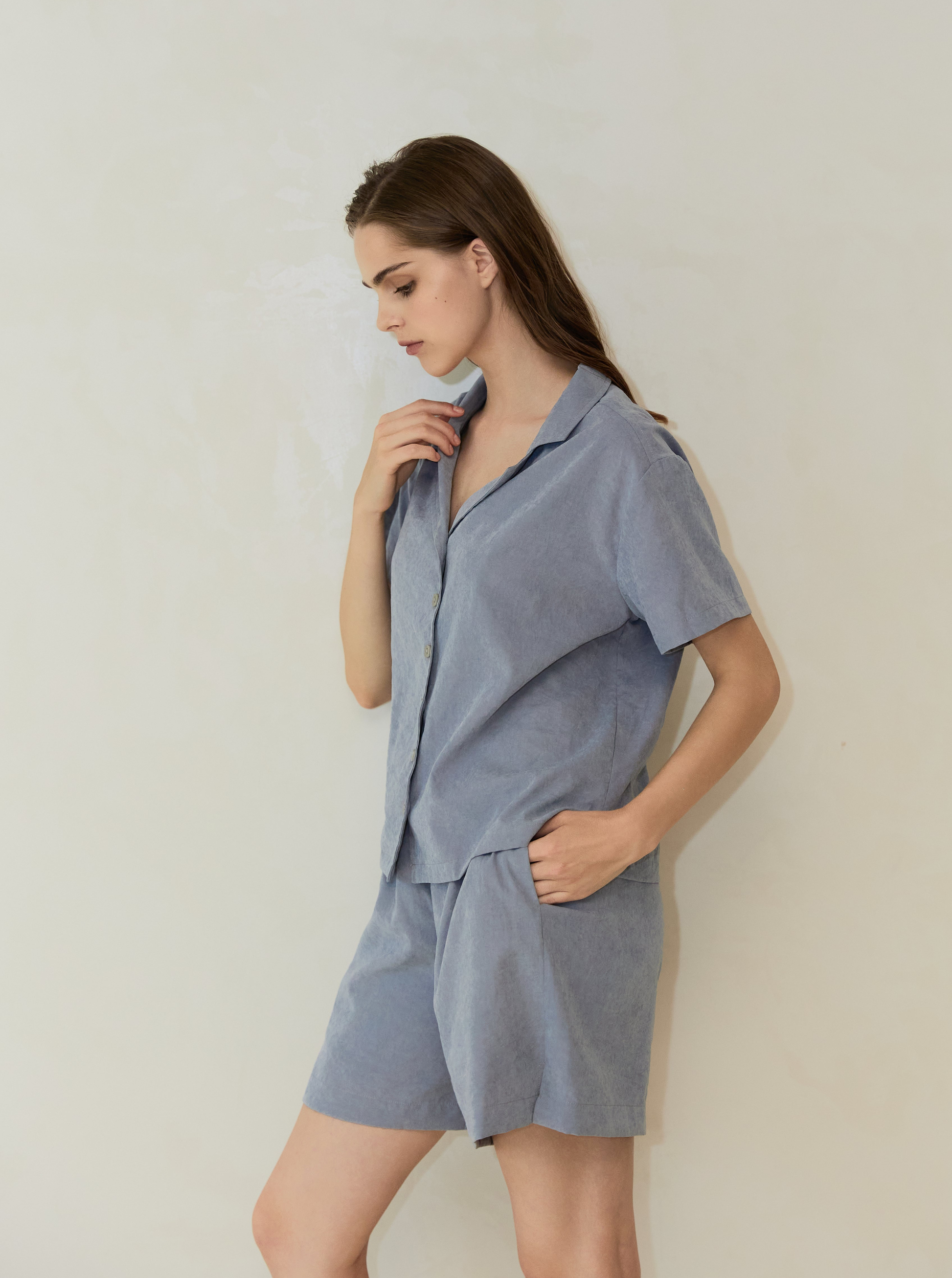 Introducing The Summer Comfort Set Shorts, the perfect complement to our matching top. These comfortable shorts are crafted from the same soft brushed fabric in silt green, creating a cohesive and stylish ensemble. Designed to be worn together with The Summer Comfort Shirt, this set is ideal for both lounging at home and casual outings. Available in two calming color options: silt green and Ashely Blue, these shorts offer a relaxed fit and effortless style, making them essential for your summer wardrobe.