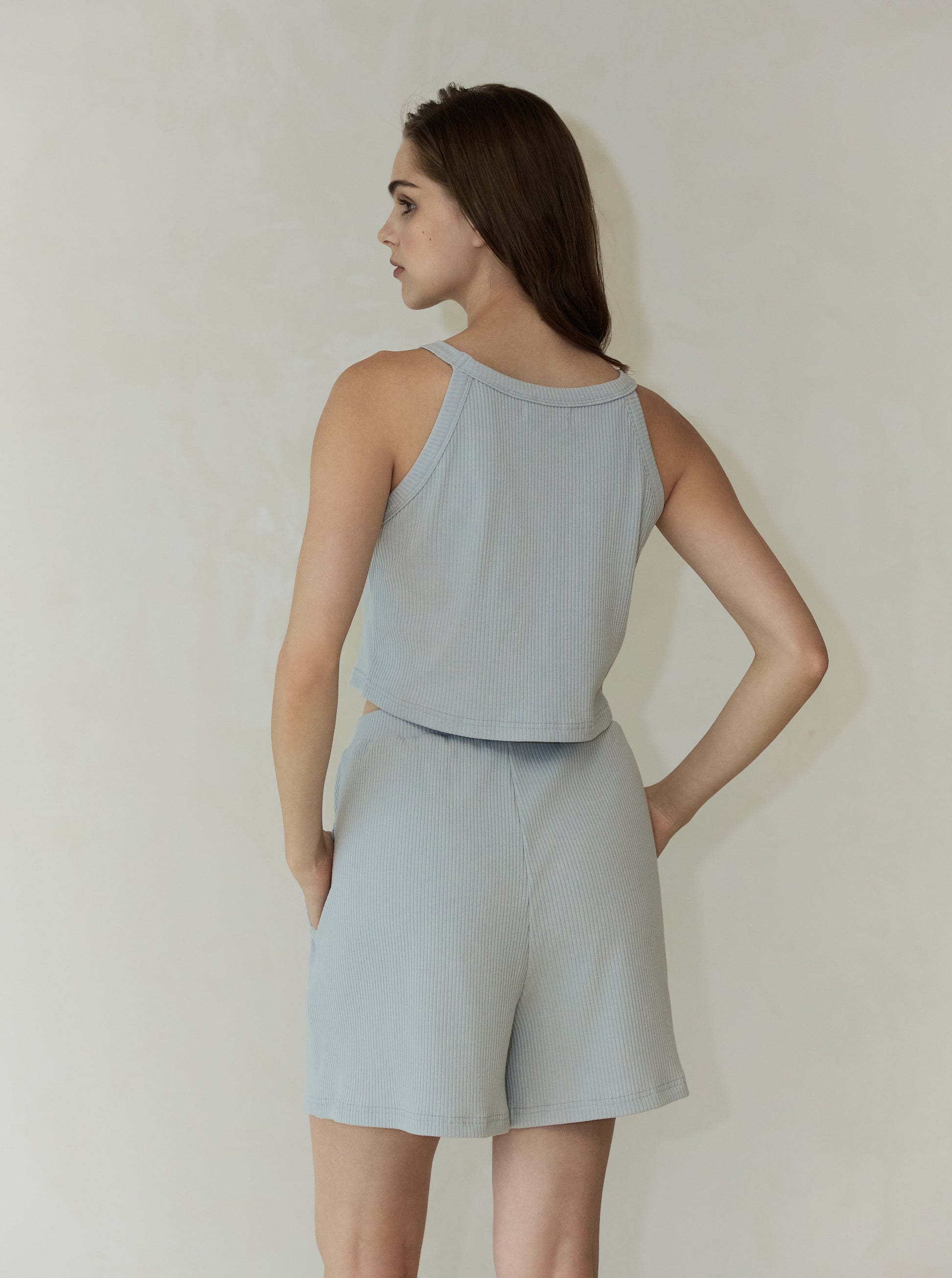 The Summer Knit Shorts are rib-knit shorts with a soft A-line silhouette for a flattering and easy summer fit. Designed to pair perfectly with The Summer Knit Halter Crop Top, they create a clean, coordinated look in both Soft Chartreuse and Icy Blue. Versatile and comfortable, they style effortlessly with tees, blouses, and everyday summer staples.