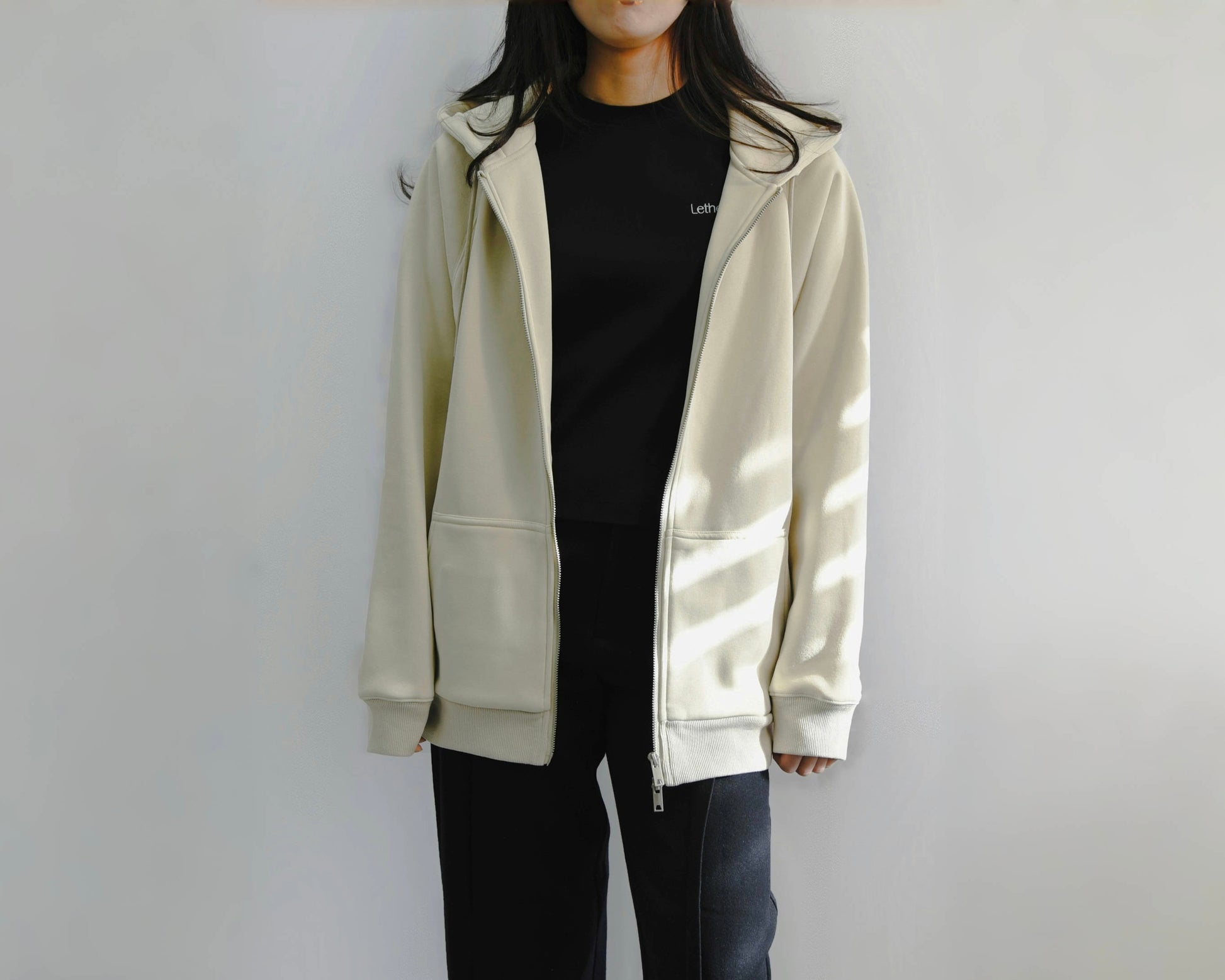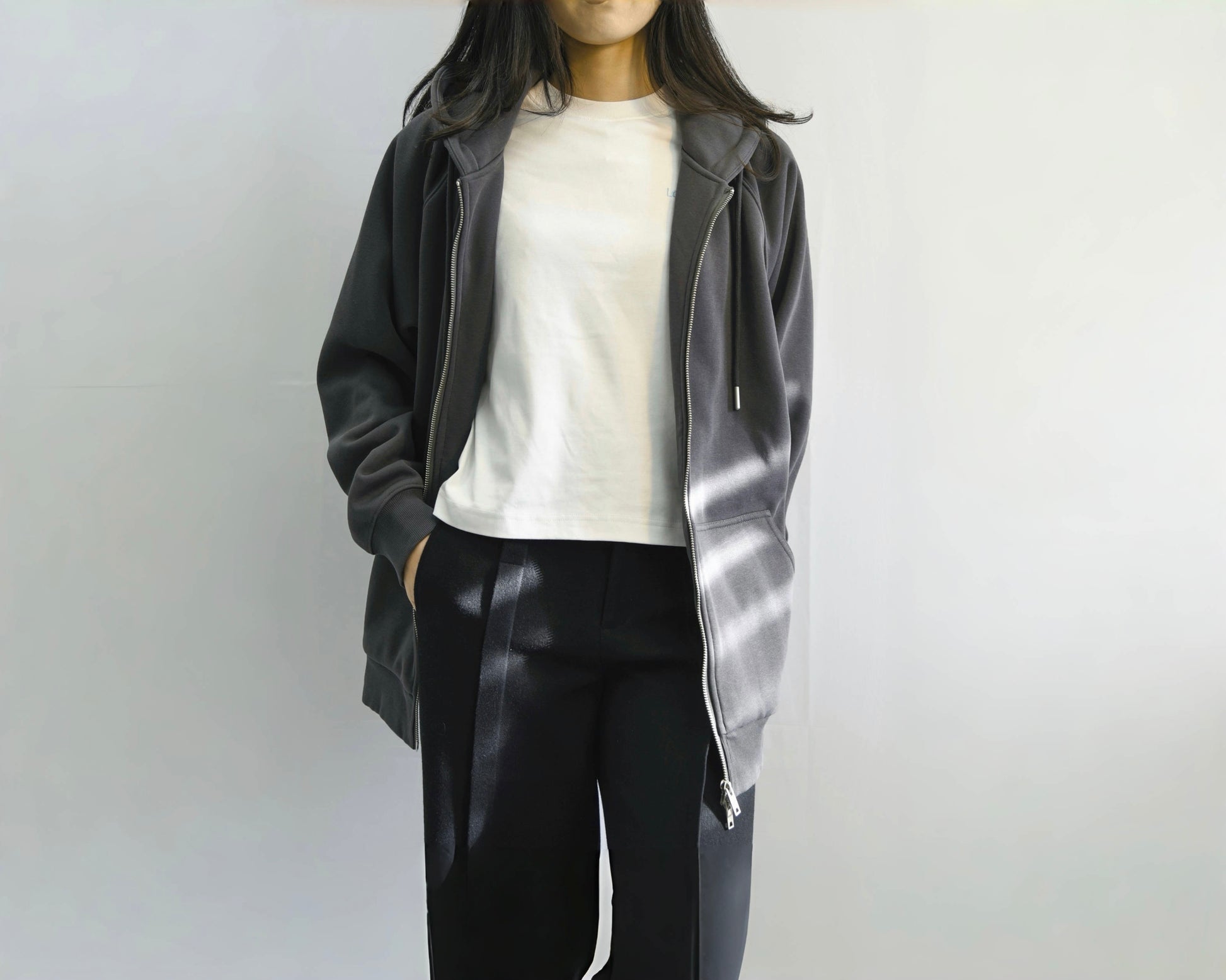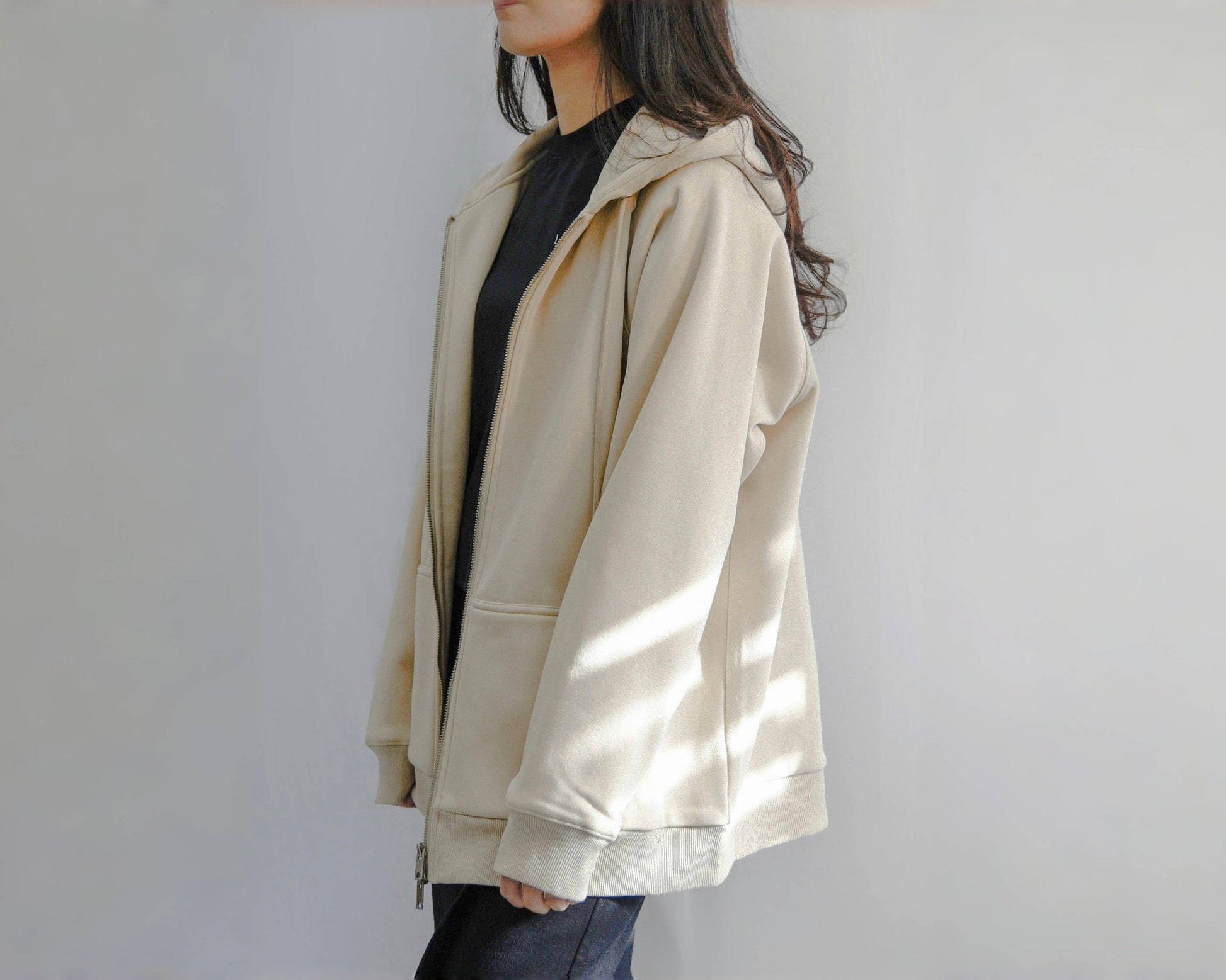 Stay cozy and stylish with this plush fleece-lined zip-up hoodie, made from airy cotton-blend fabric and available in deep iron grey and milk tea hues. The oversized fit and hidden cuff pocket offer both comfort and functionality, making it the perfect layering piece for any season. Also available in non-fleece option The Threshold Zip-Up Hoodie