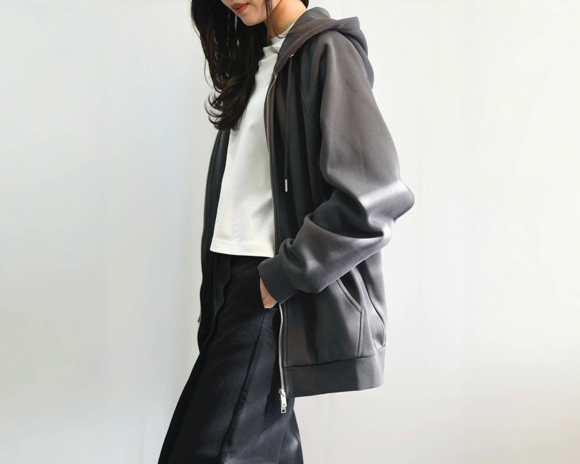 Stay cozy and stylish with this plush fleece-lined zip-up hoodie, made from airy cotton-blend fabric and available in deep iron grey and milk tea hues. The oversized fit and hidden cuff pocket offer both comfort and functionality, making it the perfect layering piece for any season. Also available in non-fleece option The Threshold Zip-Up Hoodie