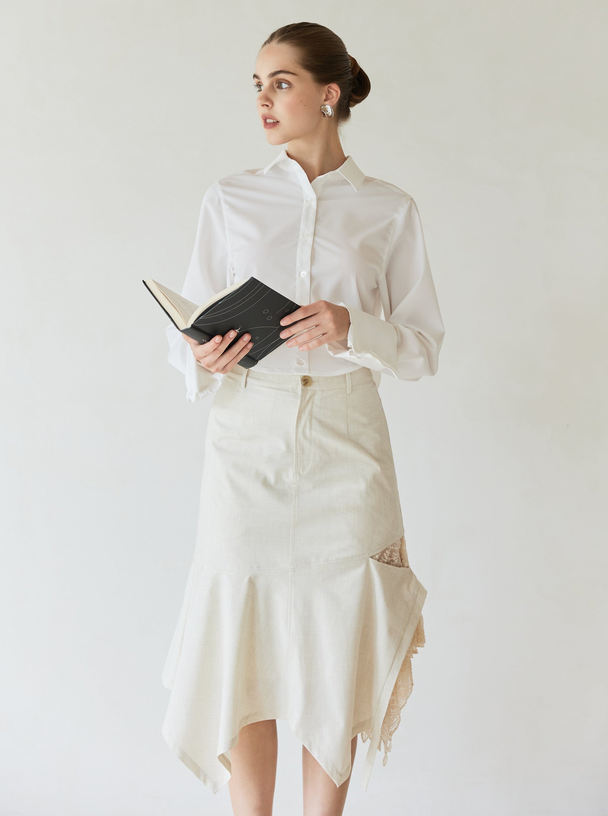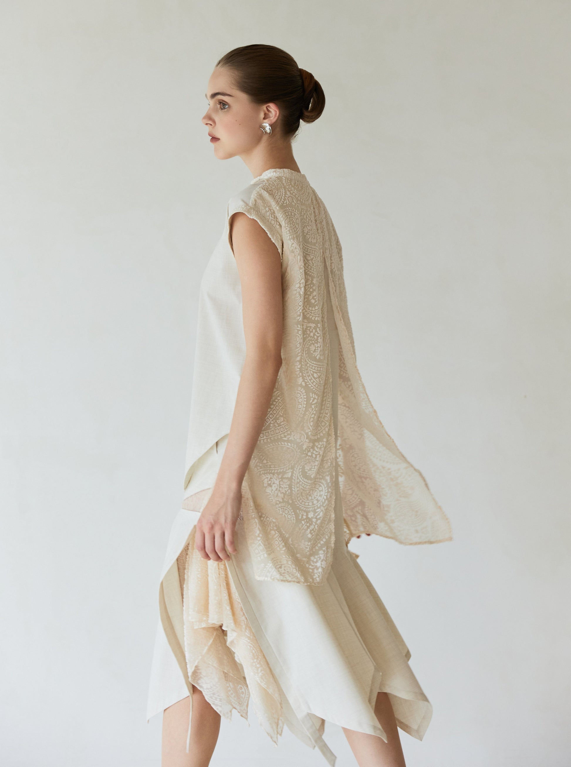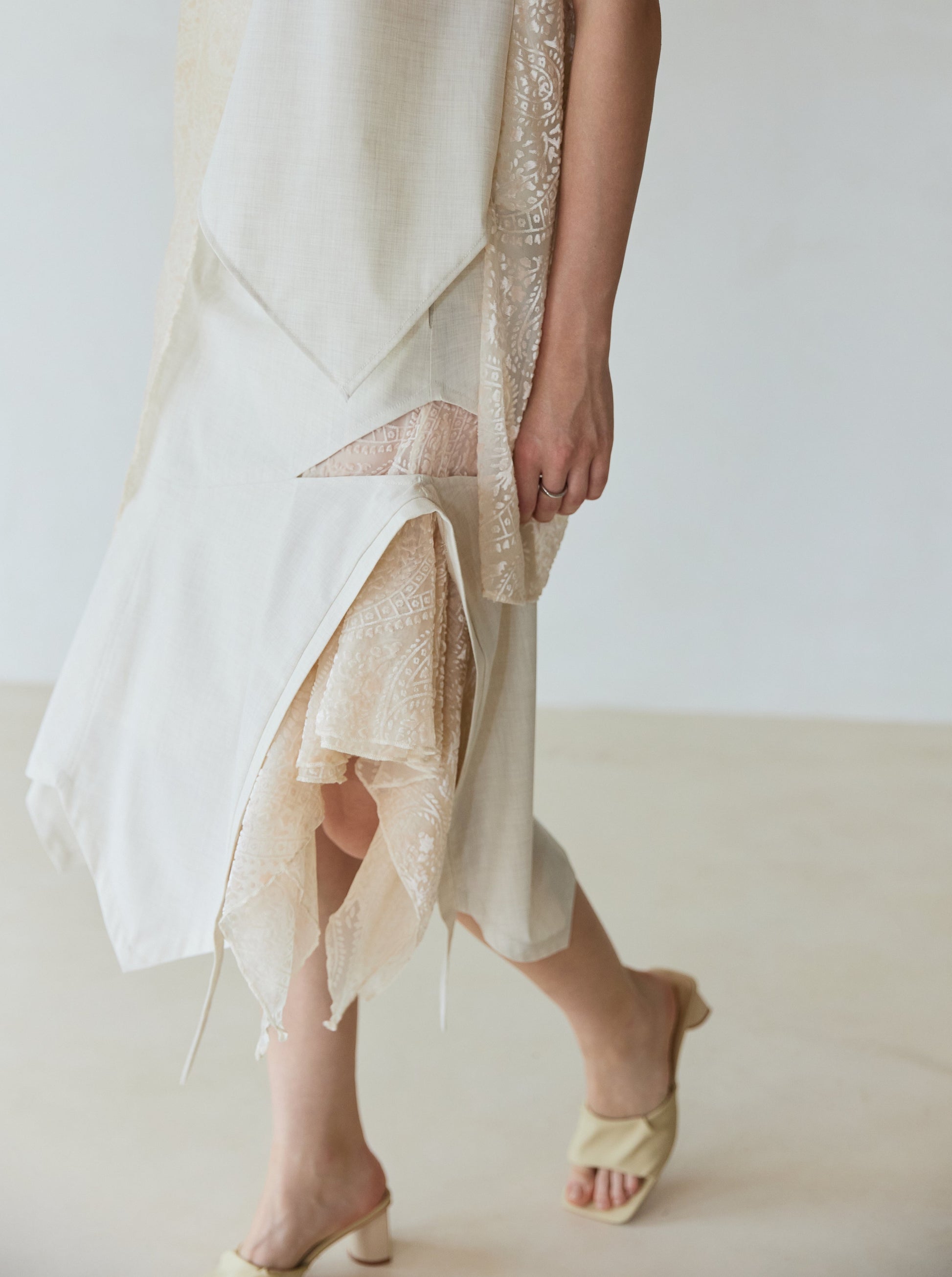 Introducing The Whispering Lace Maxi Skirt in a serene bleached sand color. This elegant skirt features a side drape design that reveals a layered, flared flocked lace hem, creating an asymmetrical and flowing silhouette. The intricate lace detailing and airy structure offer a sophisticated yet whimsical look, perfect for elevating any outfit. Embrace the graceful and ethereal style of The Whispering Lace Maxi Skirt, ideal for both special occasions and everyday elegance.