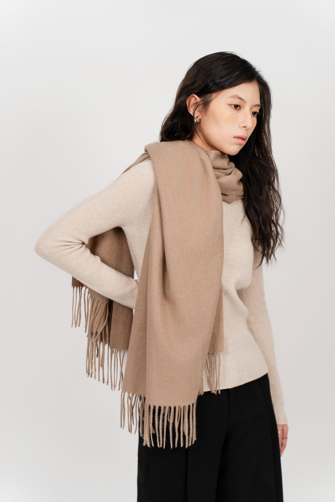 Introducing "The Woollen Embrace" scarf by Lethe Editor's Pick, a testament to the pure indulgence of warmth and style. Meticulously crafted from 100% wool in a rich and inviting stone cocoa hue, this scarf is the epitome of sophisticated comfort.