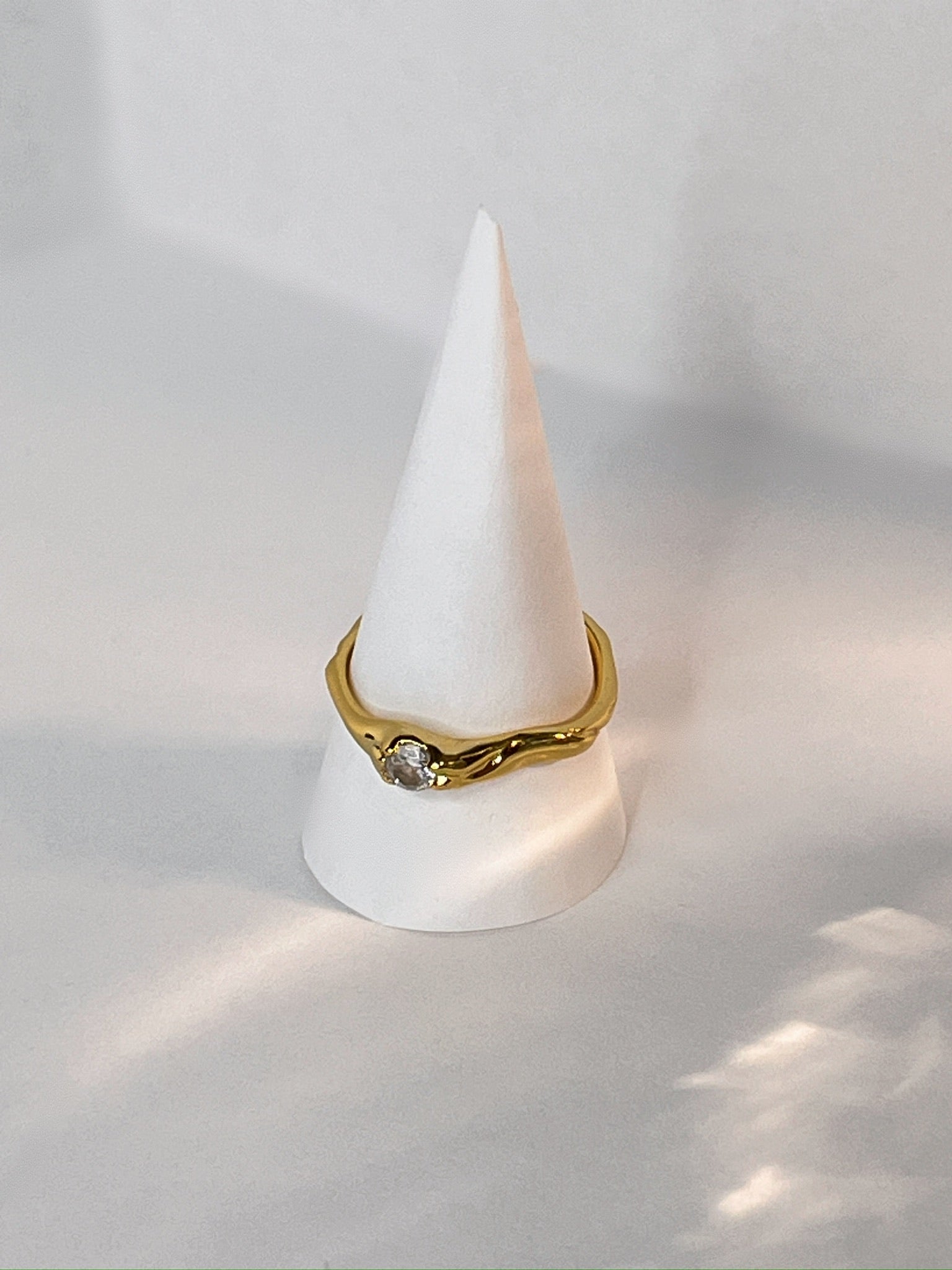 This refined open ring, available in both 925 silver and gold-plated options, features a minimalist design with a single white zircon set at its center. The clean lines and understated elegance make it a versatile piece, perfect for those who appreciate simplicity with a touch of sparkle. The zircon catches the light beautifully, adding just the right amount of shine to any look.